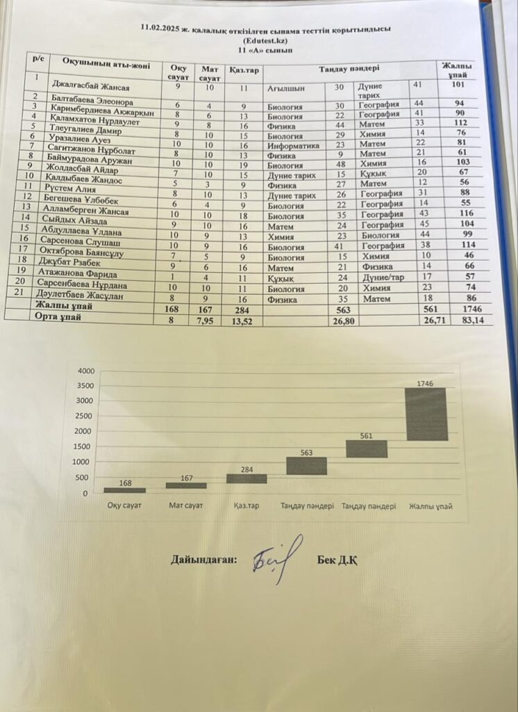 11.02.2025ж. сынама тест қорытындысы11 февраля, 20254 июня, 2025 11 ақпан күні «Edutest.kz» сайты арқылы өткізілген қалалық сынама тест қорытындысы Добавить комментарий Отменить ответВаш адрес email не будет опубликован. Обязательные поля помечены *Имя * Email * Сайт Комментарий * Сохранить моё имя, email и адрес сайта в этом браузере для последующих моих комментариев.