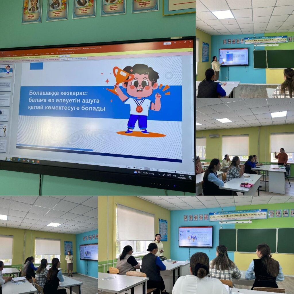 “Ата-аналарды педагогикалық қолдау» бағдарламасының  жылдық жұмыс жоспарына сәйкес 9-11 сынып оқушыларының ата-аналары үшін «Болашаққа көзқарас: балаға өз әлеуетін ашуға қалай көмектесуге болады?» тақырыбында ата-аналар жиналысы өткізілді.