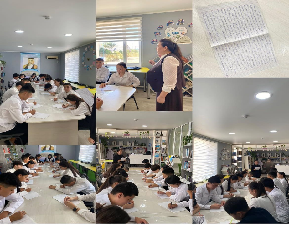 Диктант барысында оқушылар еліміздің басты құқықтық құжаты – Конституцияның мәні мен маңызы жайлы мазмұнды мәтін жазу арқылы өз ой-өрісін, жазу сауаттылығын және құқықтық түсінігін көрсетті. Іс-шара оқушылардың мемлекеттік-құқықтық бағыттағы танымын тереңдетіп, азаматтық жауапкершілігін арттыруға ықпал етті.