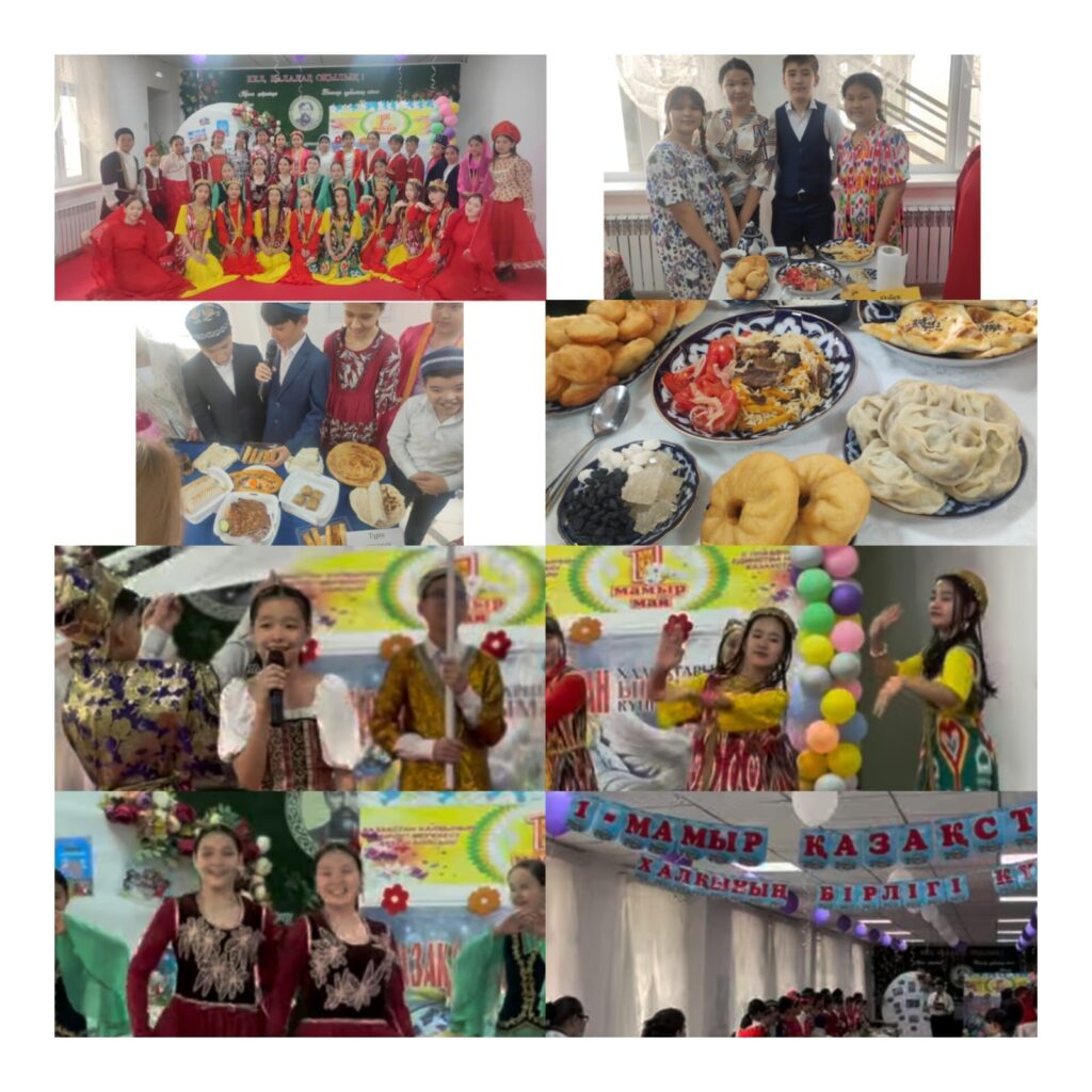 Мектебімізде 30.04.2024 ж. күні«Мамыр – Ынтымақ айы» айлық іс-шара аясында 1 мамыр халықтар достығы күніне арналған «Береке бастауы бірлік, ел іші тату тірлік» тақырыптарында мектепішілік іс -шара өтті. Мақсаты – Қазақстан халқының бірлігін нығайту, жастарды достық пен ынтымақтастықта өмір сүруге тәрбиелеу, оқу сауаттылығын арттыру. Іс-шара аясында 5-6 сынып оқушылары қазақ,орыс,түрік,грузин,әзірбайжан,өзбек ұлт өкілдерінің тағамдарын таныстырды.7-8 сынып оқушылары өзге ұлт өкілдерінің биін биледі.