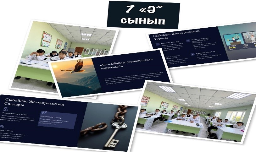 Мақсаты: «Біртұтас тәрбие» бағдарламасы аясында 2025 жылдың 13 қаңтар күні «Біз сыбайлас жемқорлыққа қарсымыз!» тақырыбында сынып сағаты ұйымдастырылды. Мақсаты: сыбайлас жемқорлық деген ұғымды түсіндіріп, пайда болу жағдайлары жайлы түсінік қалыптастыру. Өз мемлекетіне жауапкершілікпен қарау және әділдікке тәрбиелеу. Патриоттық тәрбие қалыптастыру.