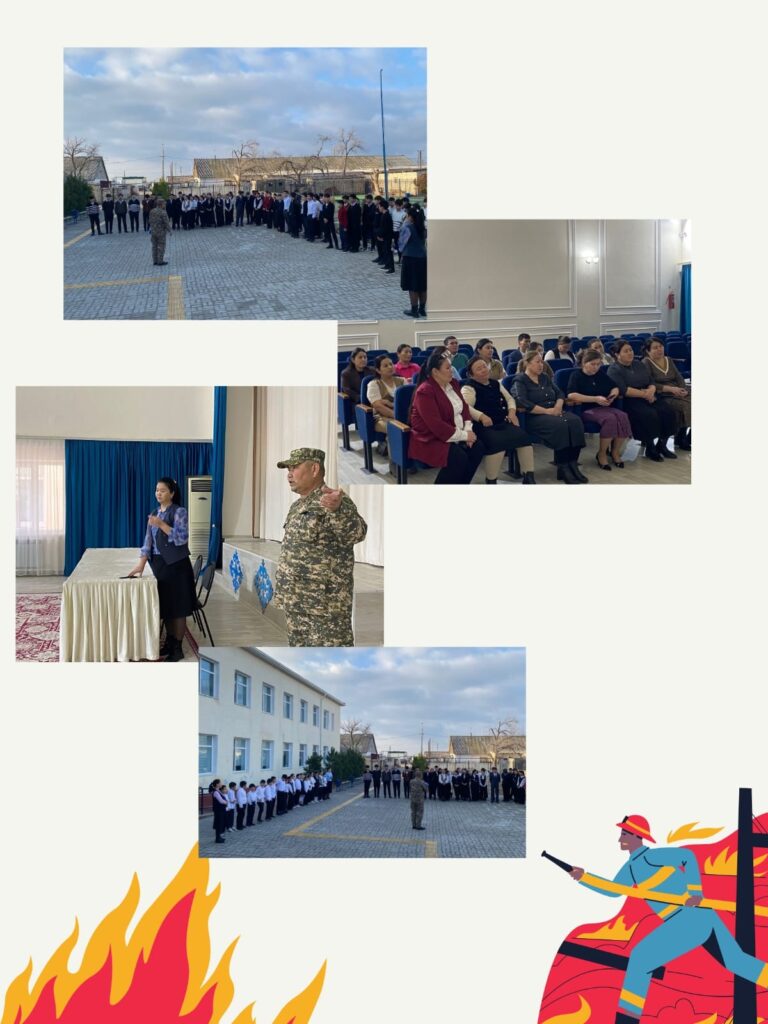 Мектебімізде 14.01.2025ж күні 5-11 сынып оқушыларына «Азаматтық қорғау саласындағы халықты және мамандарды ақпараттандыру, білімді насихаттау,оқыту қағидаларын бекіту туралы » бұйрыққа сәйкес төтенше жағдайлардың алдын алу және оларға ден қою мақсатында білім беру объектілерінде тоқсан сайын өрт және сейсмикалық жаттығулар бойынша эвакуация іс-шарасы өткізілді.