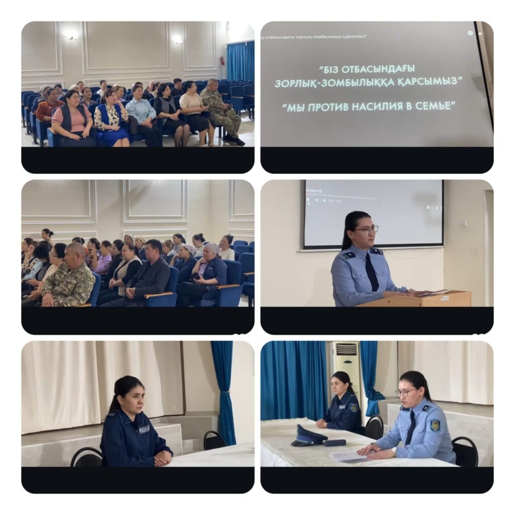 📢Кездесу барысында Ақтау қаласы ПБ ЖПҚб Отбасы-тұрмыстық зорлық-зомбылыққа қарсы күрес бөлімшесінің бастығы полиция майоры Кылишаева Камила Жарылгасыновна Отбасындағы тәлім тәрбие құндылықтарды дәріптеп зиянды әрекеттерден аулақ болу туралы түсіндіру жұмыстары талқыланып, видеоролик көрсетіп, оны талқылау жұмыстарын жүргізді. Сала мамандары қазіргі таңда отбасында кездесіп жатқан әртүрлі зорлық-зомбылық түрлерін атап өтіп, консультациялық және құқықтық көмектер беріліп, профилактикалық түсіндірме жұмыстары жүргізілді.
