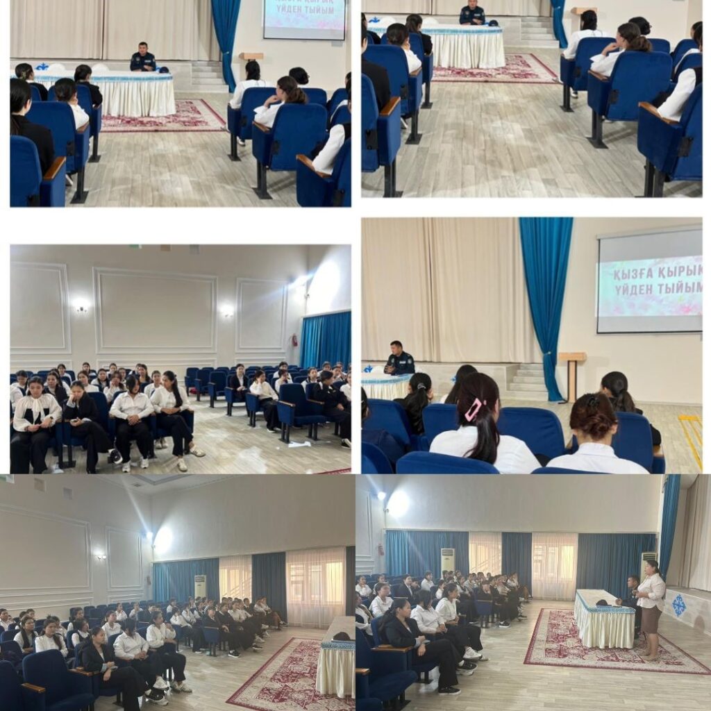 Мектеп инспекторы Жүсіпбеков Ө.М. жасөспірімдер арасындағы құқық бұзушылықтың алдын алу, интернет пен әлеуметтік желідегі қауіптер, түнгі уақытта көшеде жүру, бөтен адамдармен байланыс тақырыптарында түсіндірме жұмыстарын жүргізіп, заң аясында нақты мысалдар келтірді. Ол қыз балаларға өз қауіпсіздігін сақтаудың маңызын, сақтық пен сыпайылықтың өмірлік қажеттігін ерекше атап өтті.Жиналыс барысында қыздар өз ойларын ашық айтып, пікір алмасты.