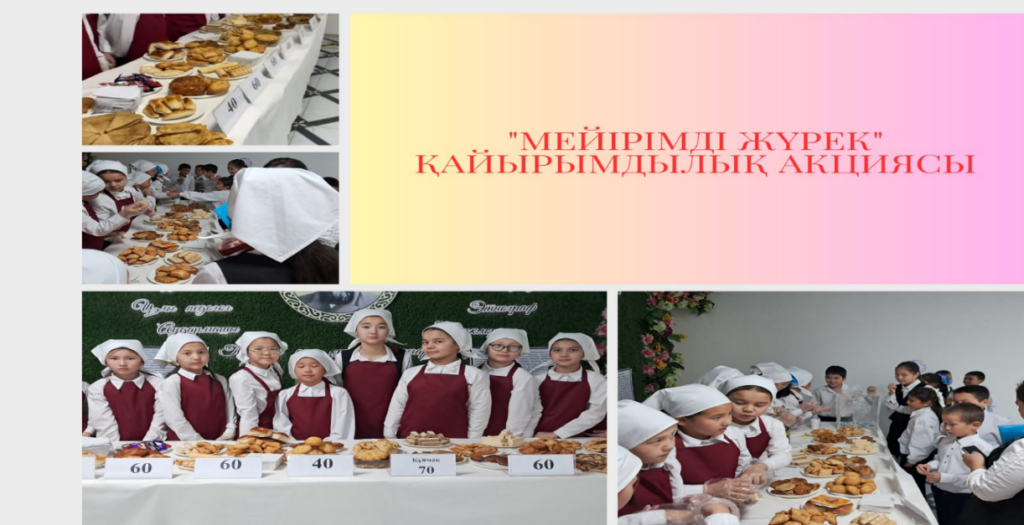 Мектебімізде 08.11.2024ж күні «Қауіпсіз балалық шақ»іс -шарасы аясында 5 сынып оқушылары арасында «Мейірімді жүрек»атты дәстүрлі өтетін қайырымдылық жәрмеңкесі ұйымдастырылды. «Кең болсаң, кем болмайсың», «Жақсылық жасап жарысайық» ұстанымын ту еткен білім алушылар және түрлі тағамдарды өз қолдарымен әзірлеп, тиімді бағада мектеп оқушыларына ұсынды. Аталмыш сауабы мол шараға мектеп ұжымы, барша білім алушылар атсалысып, өз үлестерін қосты.