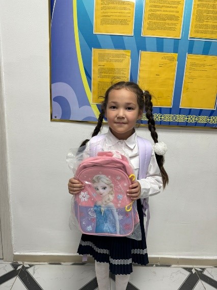 3 оқушыны мектепке қажетті оқу құралдары салынған мектеп сөмкесімен қамтамасыз етті.