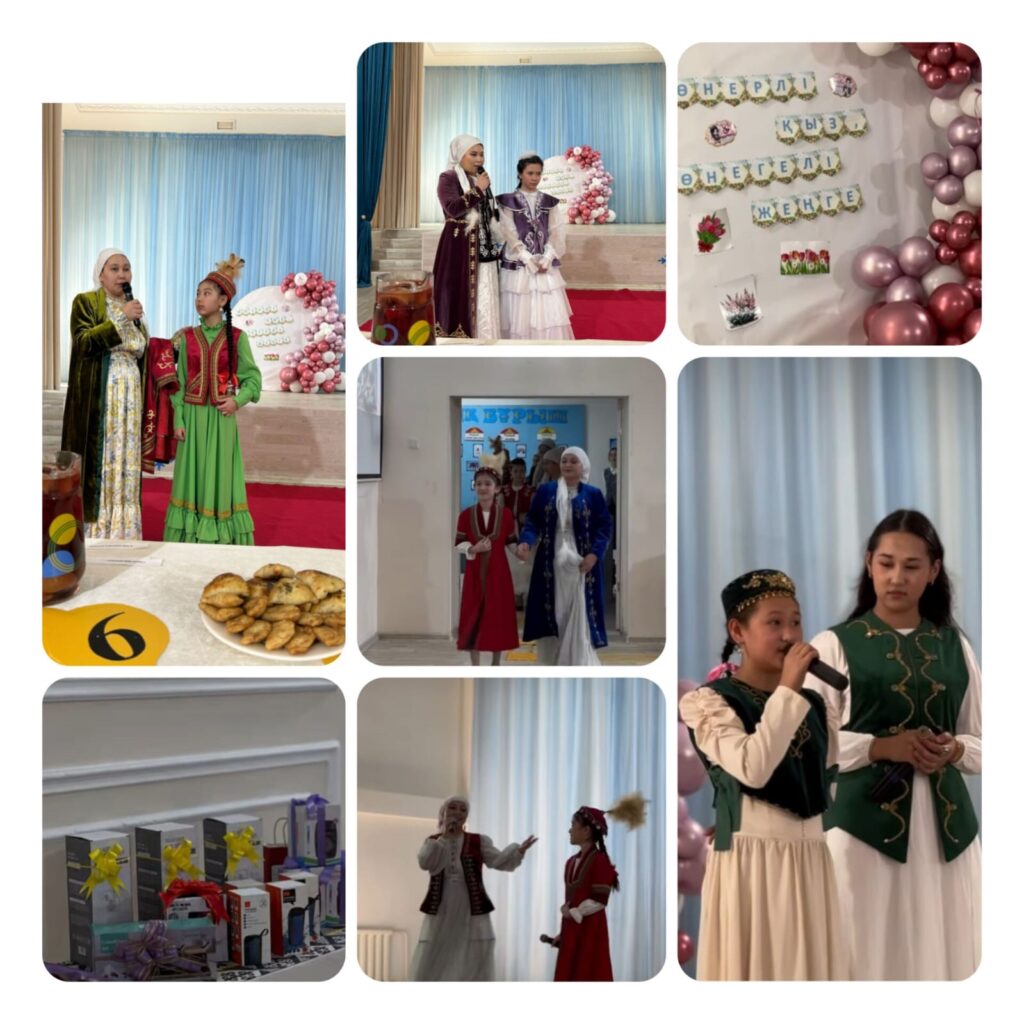 8 наурыз Халықаралық әйелдер күні мерекесіне орай мектебімізде 5-7 сынып оқушылары арасында «Өнерлі қыз, өнегелі жеңге» сайысы өтті. Бұл сайыстың басты мақсаты жеңге мен қайын сіңлі арасындағы өзара сыйластықты, бір-біріне деген сүйіспеншілікті нығайтып, ана мен бала, жеңге мен қыз арасындағы тәрбиені одан әрі дамыту. Адамгершілік қасиеттерін, Отанын, тілін, қазақи салт-дәстүрді құрметтей білуге, ұлттық салт-дәстүрді қадірлеуге, туыстық қатынас, соның ішінде жеңгесінің алар орны мен рөлін ұғынуға тәрбиелеу.