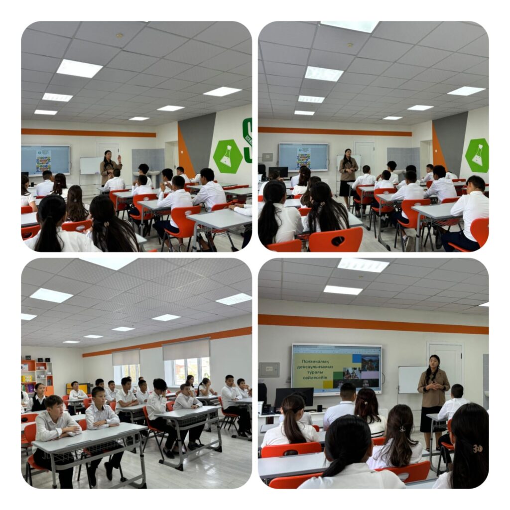 Мектебімізде 08.10.2024 ж күні «10 қазан- Дүниежүзілік психикалық денсаулық күніне» орай 8 сыныптарға «Психикалық денсаулық туралы сөйлесейік» тақырыбында дәріс сабақ өткізілді. Мақсаты: Оқушылардың эмоционалды сезімдерін басқаруға үйрету, психикалық денсаулық туралы мәліметтер беру. Сабаққа 56 оқушы қатысты Дәріс сабақ презентация арқылы түсіндірілді. Оқушылар өздерінің жағымсыз эмоцияларын басқару ережелерімен танысып, сұрақ жауаппен қорытындыланды.