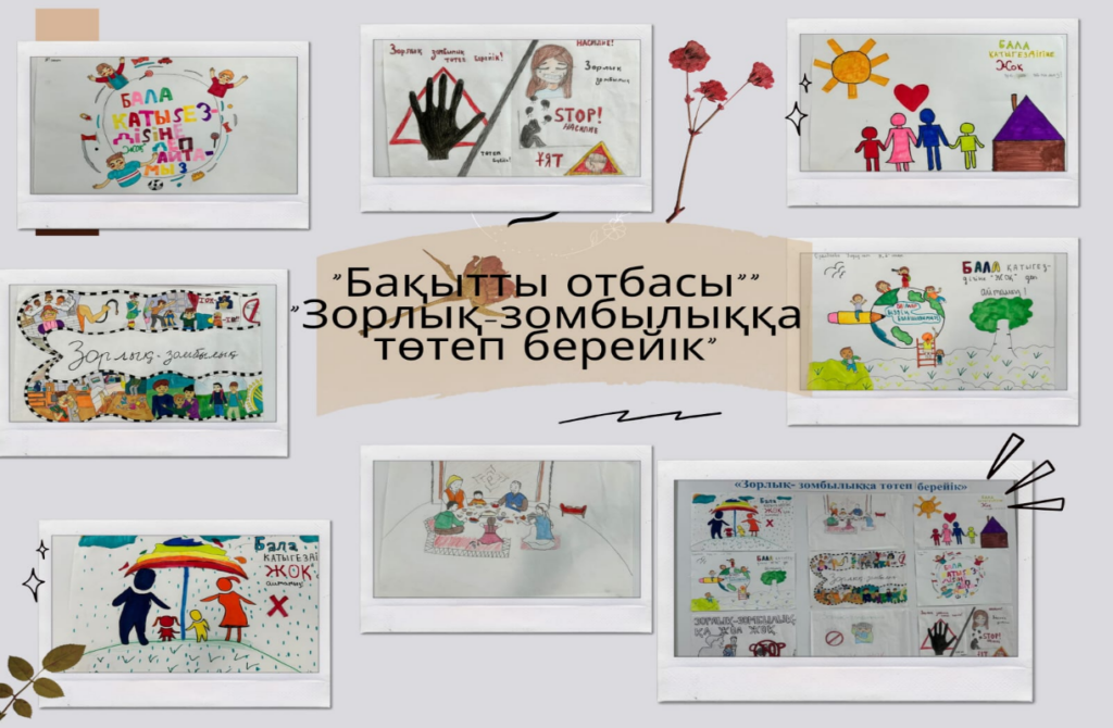 Мектебімізде 15.11.2024ж күні «Қауіпсіз балалық шақ» айлық іс-шара аясында 5-9 сынып білім алушылар арасында «Бақытты отбасы»,»Зорлық-зомбылыққа төтеп берейік» тақырыбында сурет көрмесі ұйымдастырылды.Білім алушыларға өзін-өзі тәрбиелеуден бастап, өзіне деген сенімді ояту, зорлық-зомбылыққа, қатыгездікке жол бермеу.